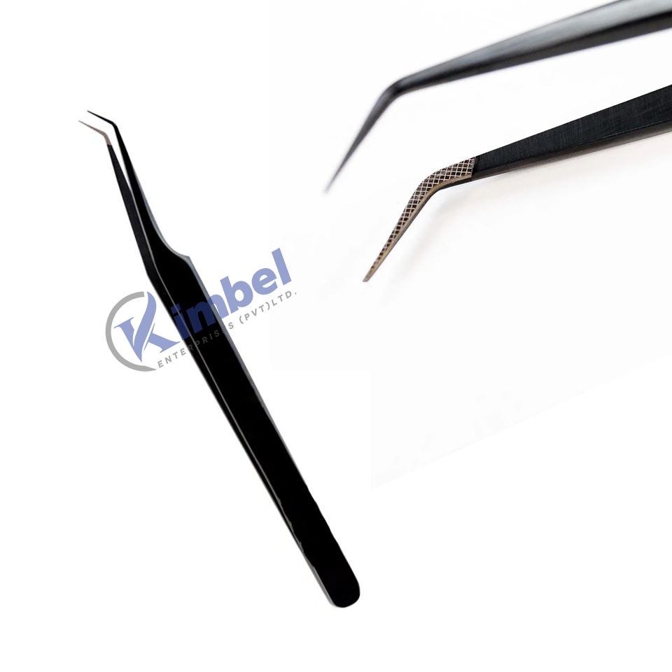 Pinces à épiler professionnelles en acier inoxydable, pointe en fibre noire, précision, durabilité, courbées à 45 degrés, pour extensions de cils