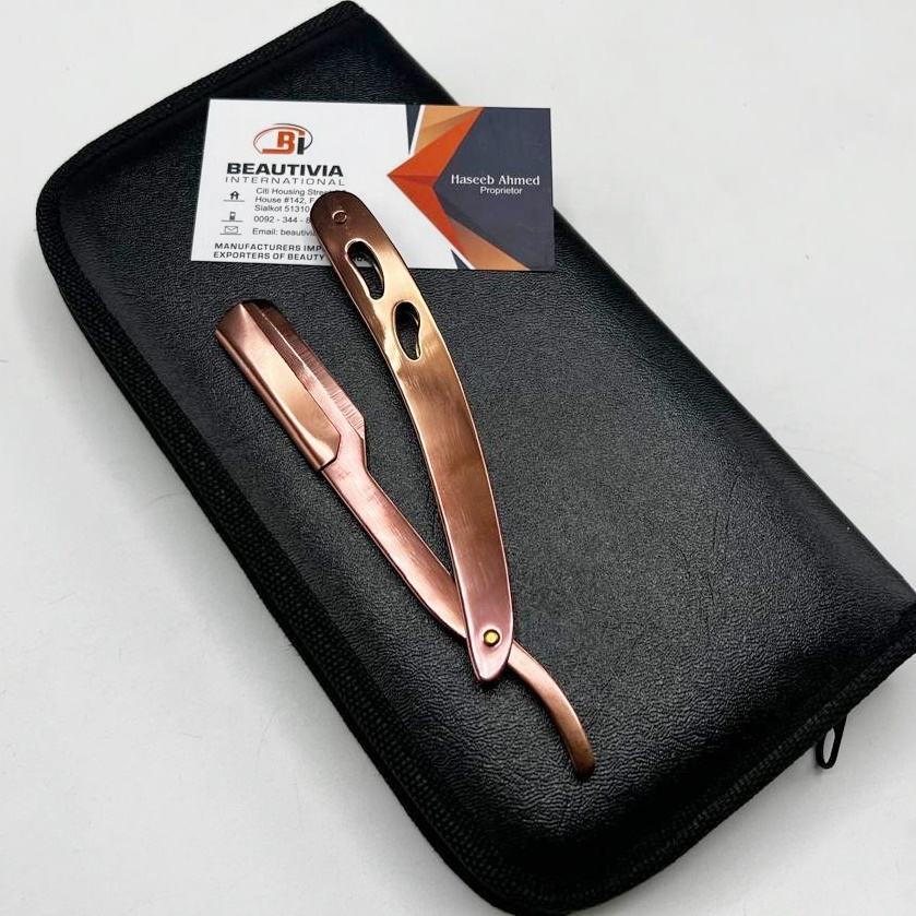 Rasoir de sécurité jetable professionnel Logo personnalisé or Rose acier inoxydable coupe droite gorge caractéristique personnalisable outil de barbier