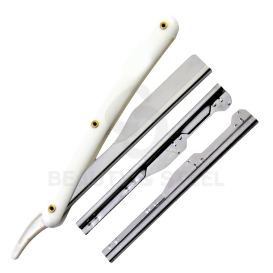 Rasoir droit professionnel double face pour barbier, outil de rasage multi-lames avec manche noir mat et contrôle de précision