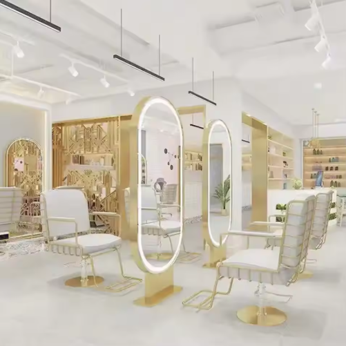 Miroir de coiffure professionnel double face doré pour salon de coiffure, design moderne pour centre commercial, atelier