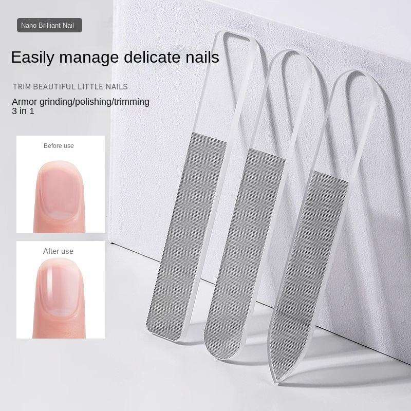 Lime à ongles professionnelle double face en nano-verre et acier, mini lime à ongles lavable en plastique, outil de polissage pour une manucure sans danger, droite