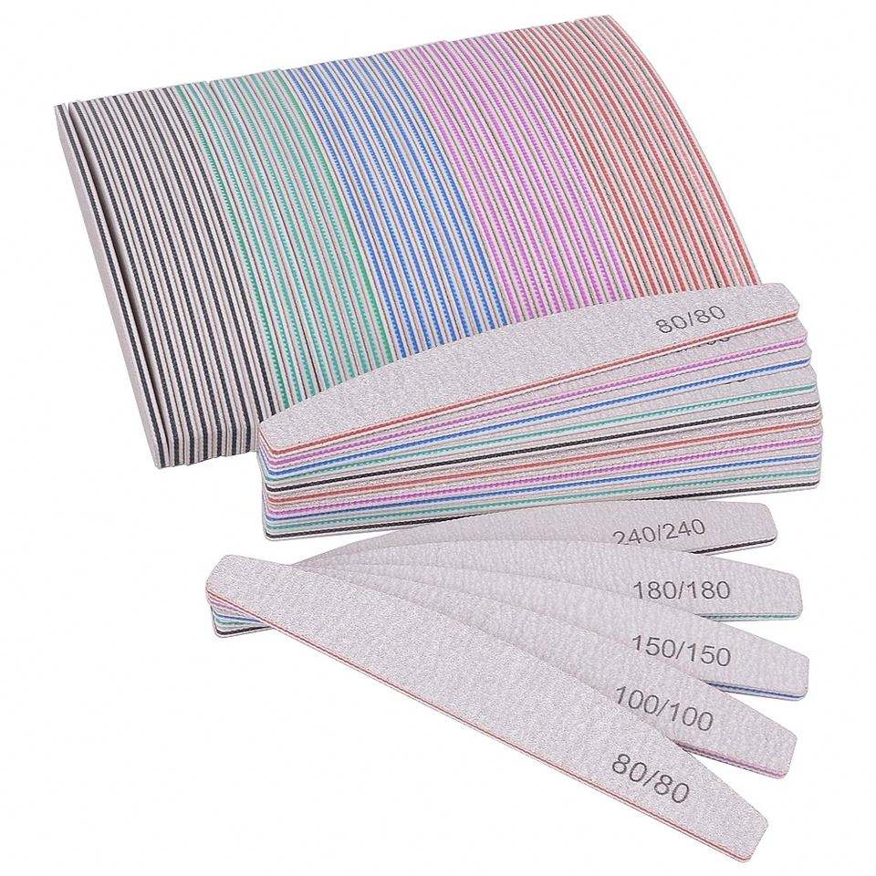 Lime à ongles professionnelle double face en plastique, papier de verre 100/180, limage forte et épaisse, forme demi-lune, accessoires pour ongles