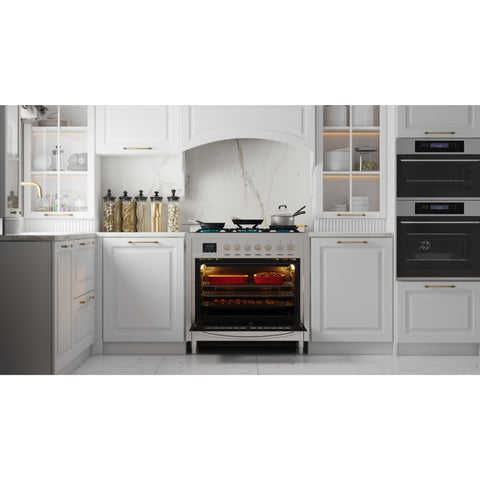 Cuisinière professionnelle à double carburant en acier inoxydable de 36 pouces, 4,3 pieds cubes Four à gaz électrique indépendant de 35,4 x 27,1 pouces, dimensions 161 livres