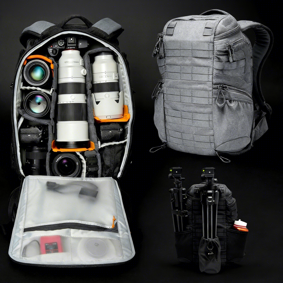 Sac à dos professionnel pour appareil photo en EVA 30L avec accès à 4 points, fermeture éclair, housse de pluie imperméable pour appareils photo reflex numériques, hybrides, drones, compatible avec ordinateur portable 16 pouces