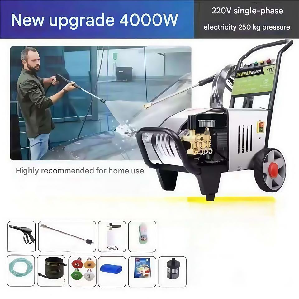 Nettoyeur haute pression électrique professionnel | Tuyau haute flexibilité de 15 m | Utilisation en station de lavage automobile | Comprend une buse turbo et une brosse