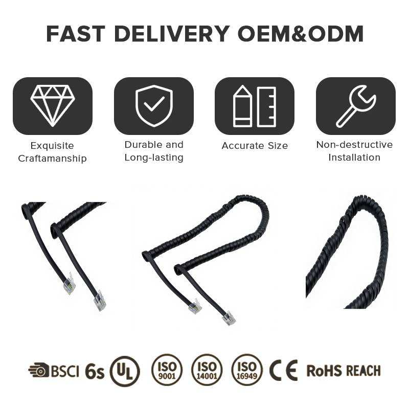 Harnais de câblage électronique professionnel RJ12 6P6C à spirale inversée, conducteurs en cuivre, isolation PVC/PBT, indice de protection IP20, pour intérieur