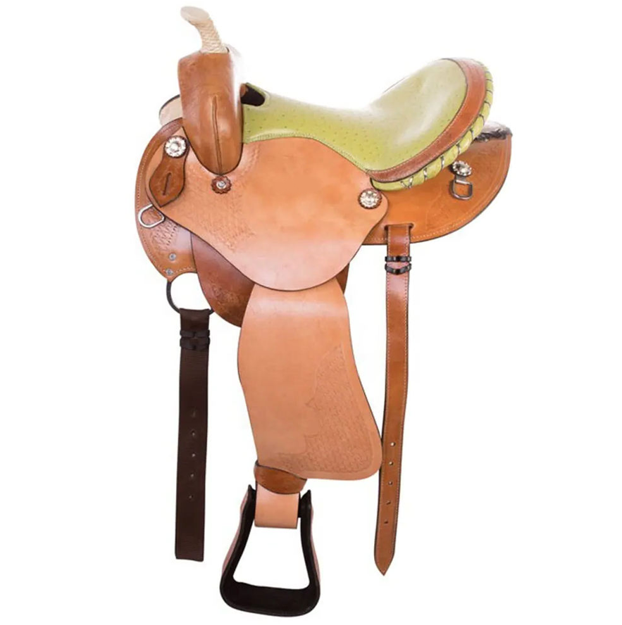 Selle de cheval professionnelle de qualité supérieure, durable, en cuir et bois, pour l'équitation, le trail, le barrel racing, le western, gravée à la main