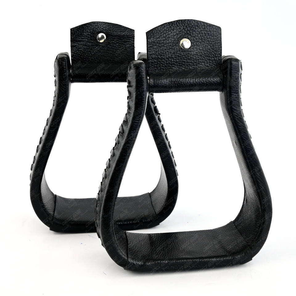 Equine Western Horse Riding Bell Étriers avec laçage en cuirNom du produit