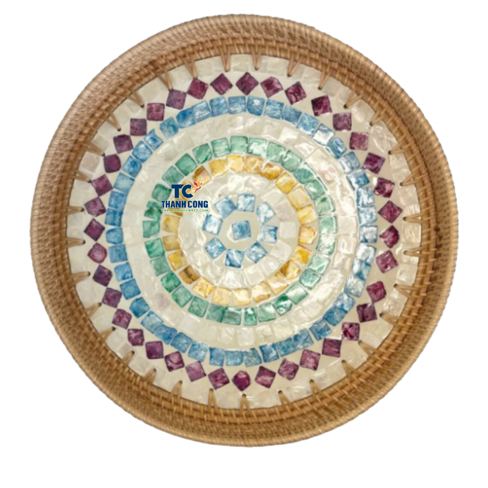 Exportateur professionnel de plateaux en rotin et nacre, style de service de luxe, utilisant des plateaux de service en nacre du Vietnam