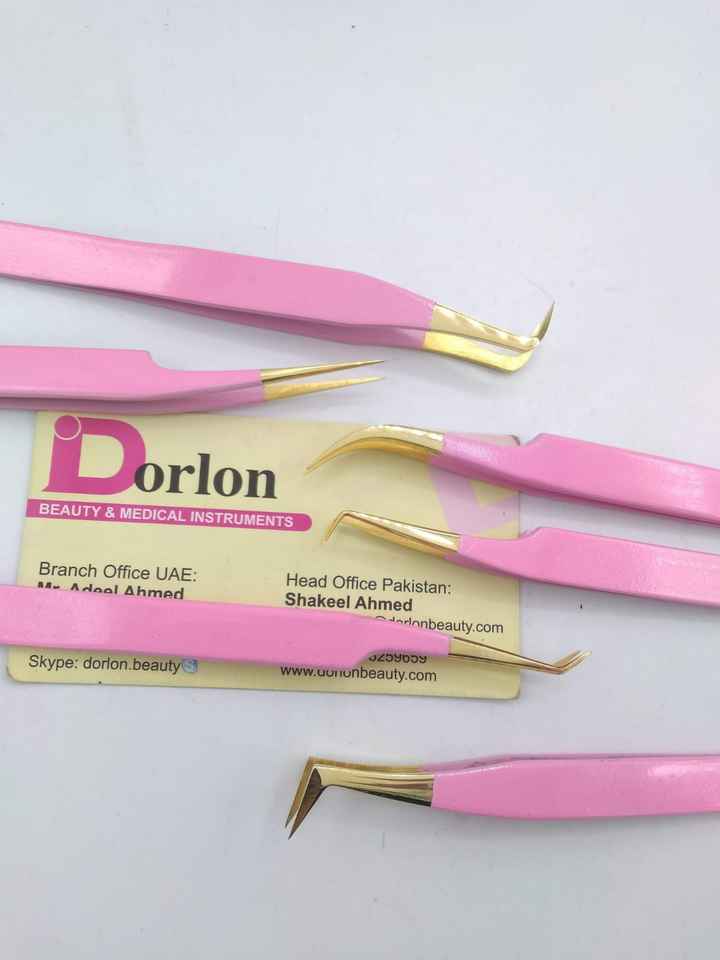 Pince à cils professionnelle couleur rose avec pointes plaquées or pince à cils en acier inoxydable pince à épiler russe et méga volume
