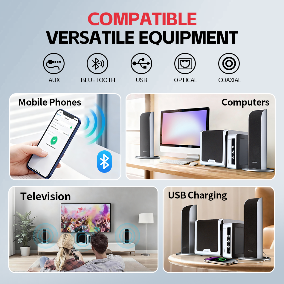 Système de haut-parleurs HiFi professionnel FC361BT sans fil Bluetooth 5.3 en plastique 2.1 canaux avec amplificateur discret audio haute résolution pour jeux sur PC