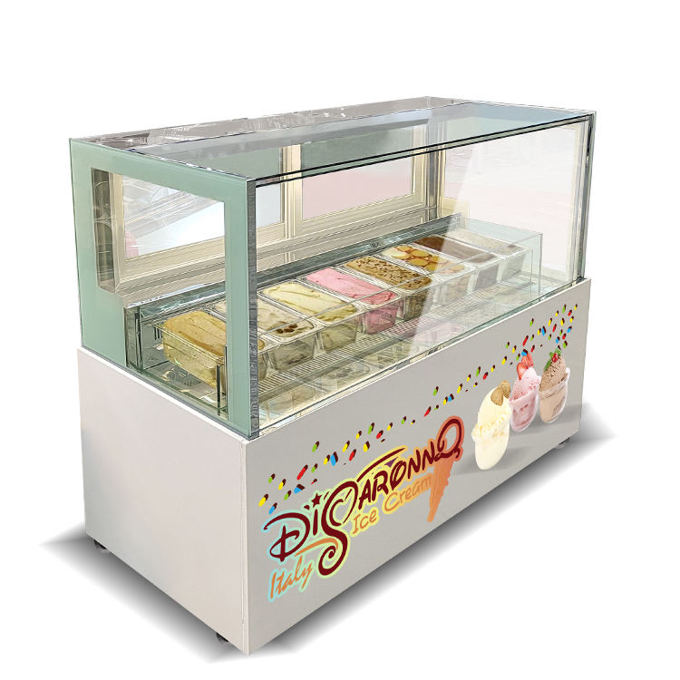Vitrine de congélation pour gelato professionnelle, armoire de présentation de crème glacée avec dessus en verre, certifiée ETL CE, pour cafés, équipement de machine à grignoter