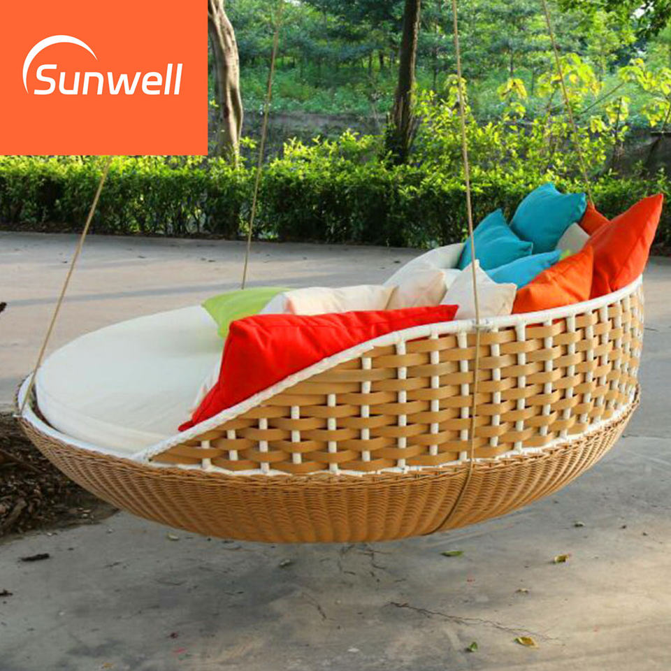 Balançoire de lit suspendue d'usine professionnelle mobilier d'extérieur lit de chaise longue suspendu avec coussins imperméables