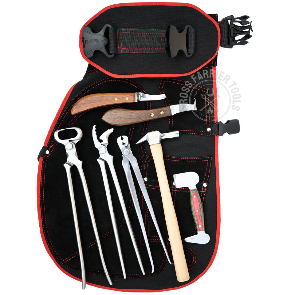 Kit d'outils professionnels pour maréchal-ferrant : tablier, couteau à sabots, couteau à boucle, marteau, tampon double action, pince à sertir, pince à clous