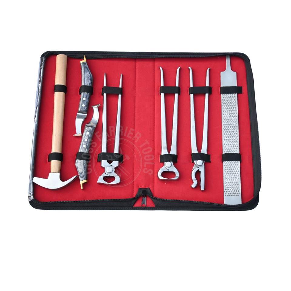 Trousse d'outils de maréchal-ferrant avec pince à sabot, pince à clous et marteau de ferrage