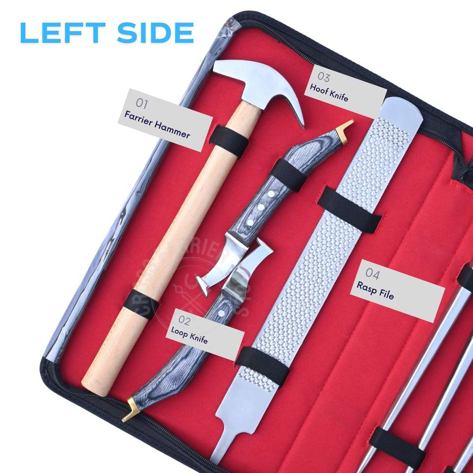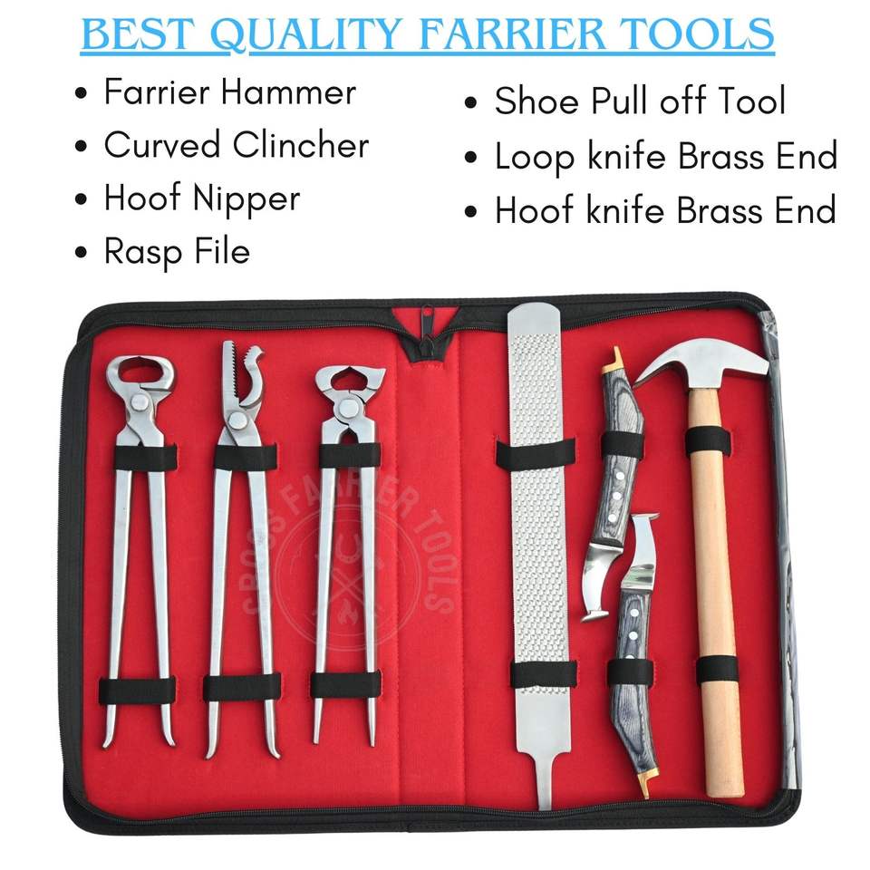 Nom du produit:Trousse d'outils de maréchal-ferrant avec pince à sabot, pince à clous et marteau de ferrage