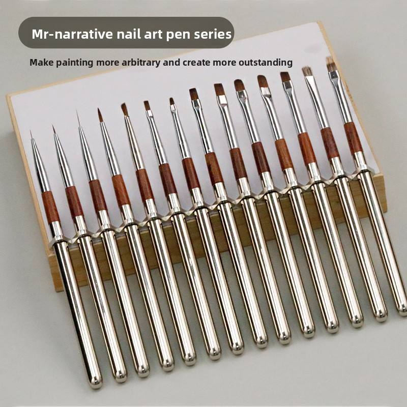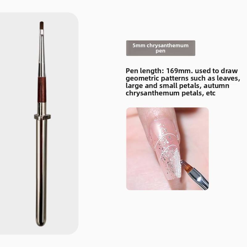 Pinceaux à Ongles Professionnels à Manche Plat en Nylon avec Capuchon Métallique, Pinceaux UV Gel Nail Art pour Peinture Ombré et Décoration de Manucure