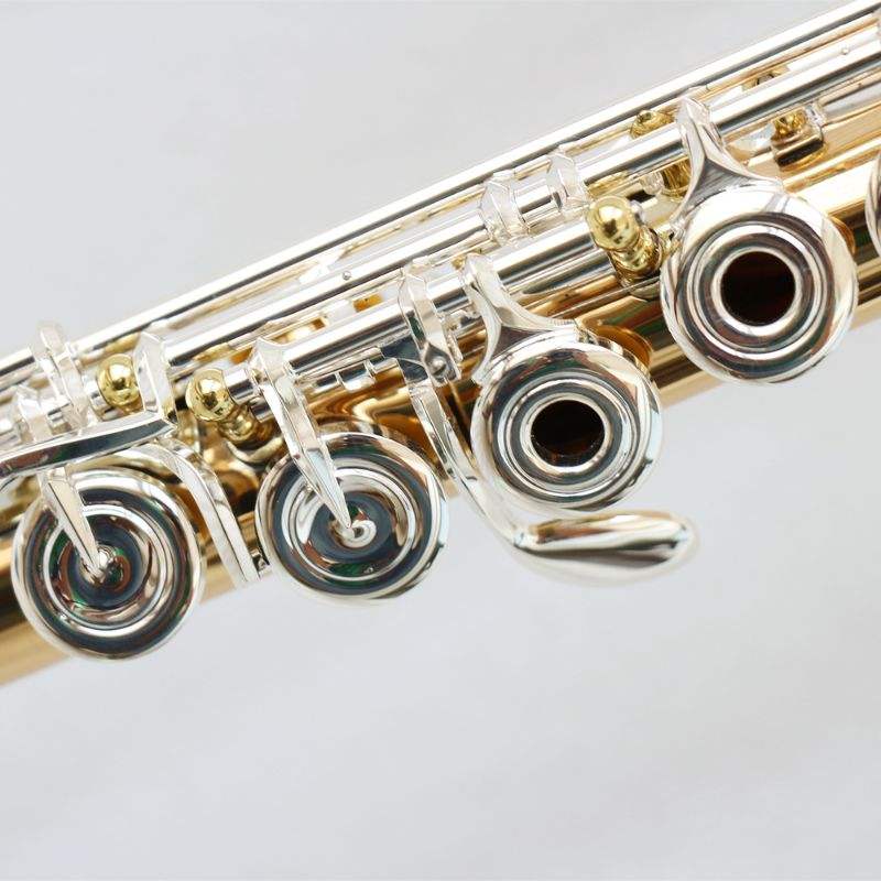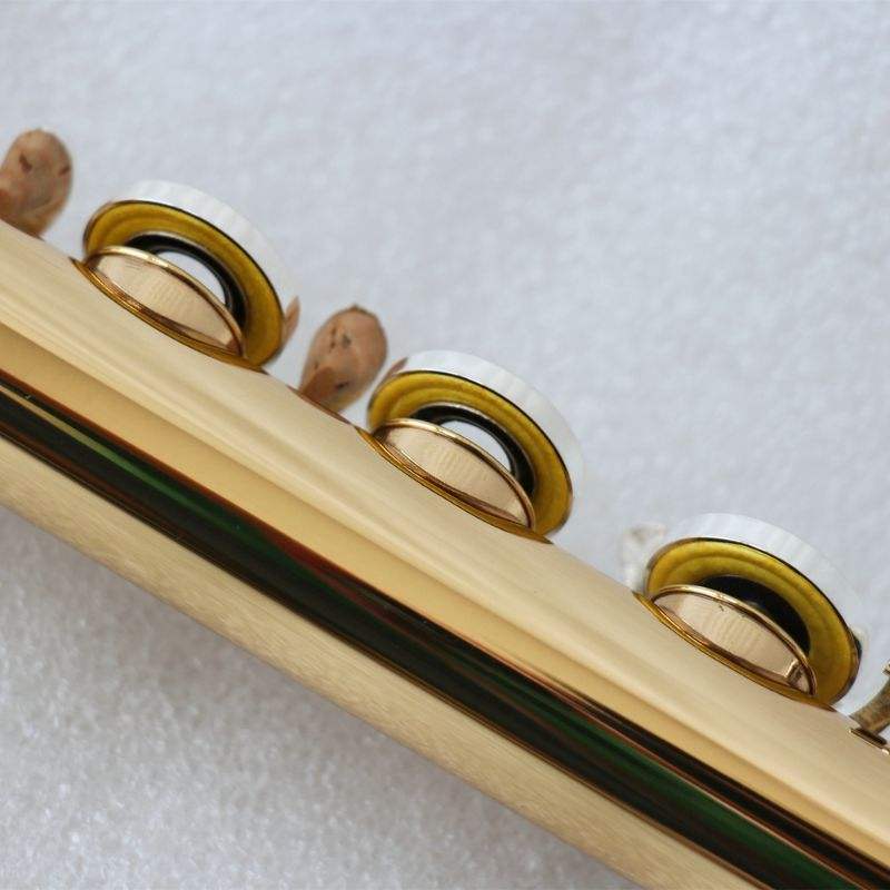 Flûte professionnelle 17 clés tonalité Do Corps en laiton doré Laque transparente Instrument de musique Flûte traversière