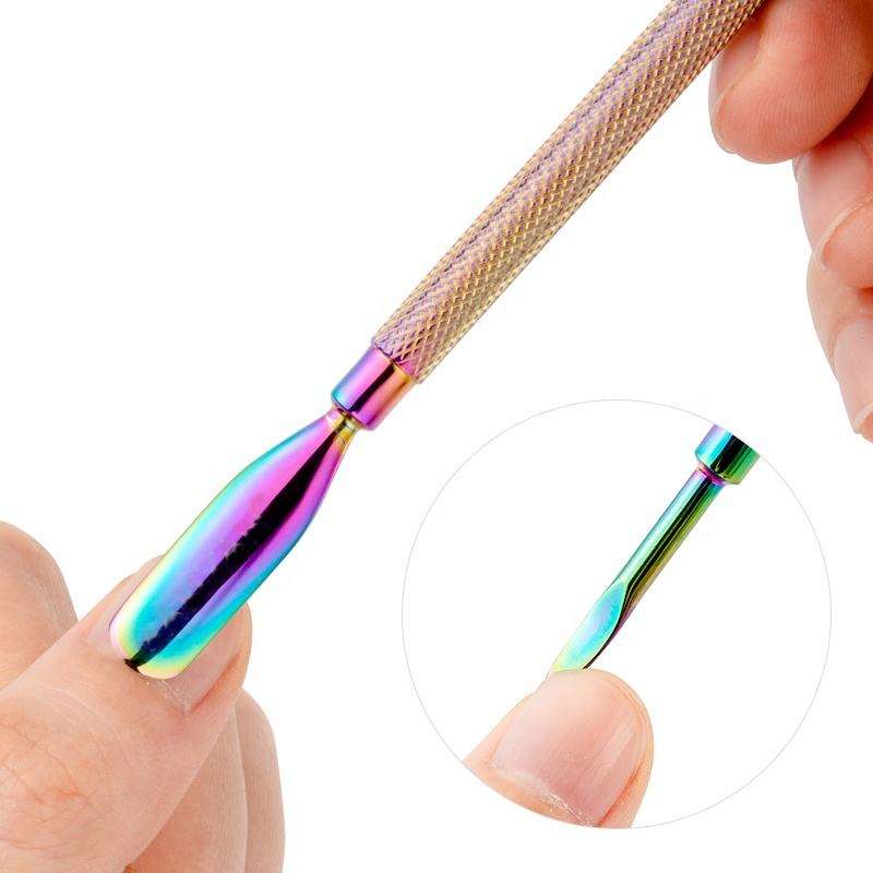 Kit professionnel de soins des doigts et des pieds, outils pour ongles en acier inoxydable, pousse-cuticules double extrémité effet caméléon arc-en-ciel ANAAIF