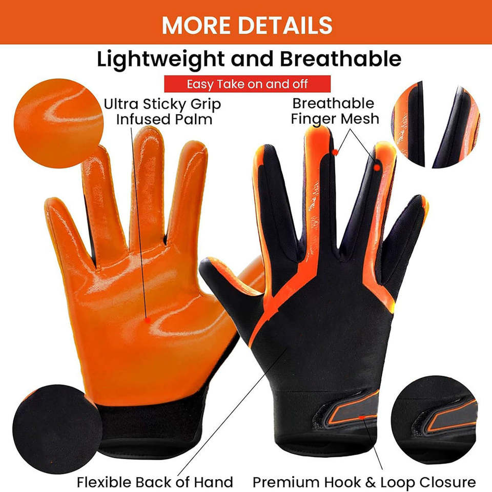Gants de receveur de football professionnels pour une meilleure adhérence, design flexible, ajustement confortable, entraînement et soutien en jeu, jeunes et adultes