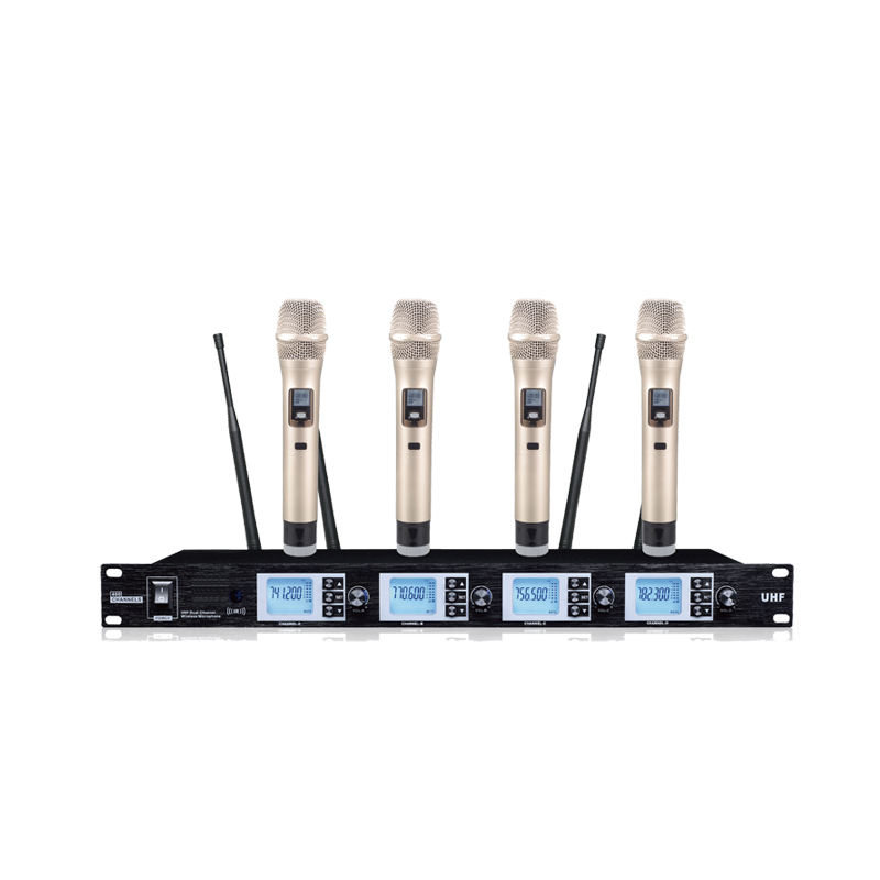 Nom du produit:Microphone de karaoké OEM disponible, microphone sans fil UHF à quatre canaux