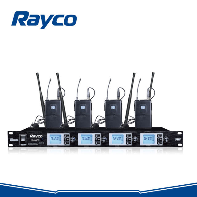 Microphone sans fil UHF professionnel à quatre canaux pour karaoké, OEM disponible, directivité cardioïde, fabriqué en métal et plastique