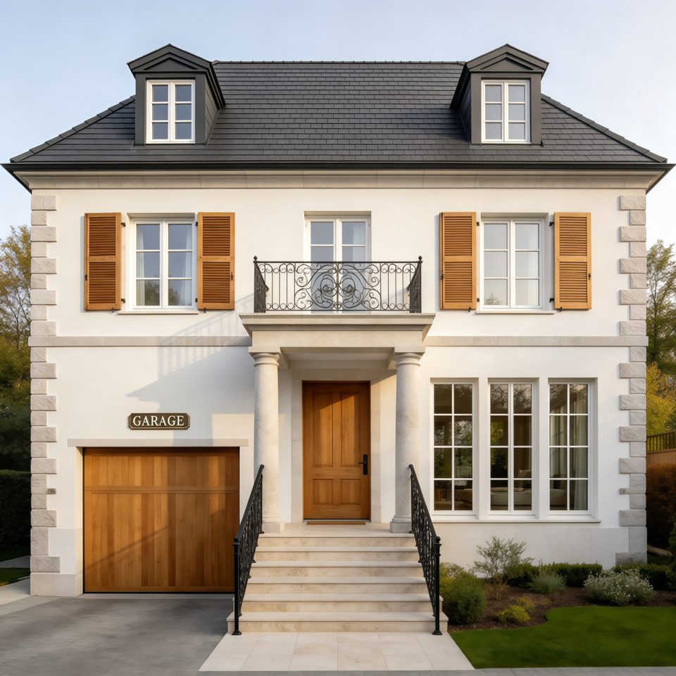 Services professionnels de conception d'architecture contemporaine française : Maison moderne à deux étages avec 4 chambres et garage pour 2 voitures