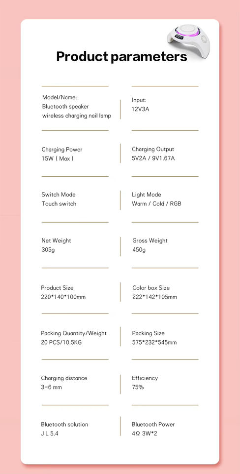 Lampe de séchage professionnelle pour vernis gel, lampe à LED pour ongles, sécheuse à ongles, lampes UV avec chargeur sans fil pour téléphone 15W et haut-parleur