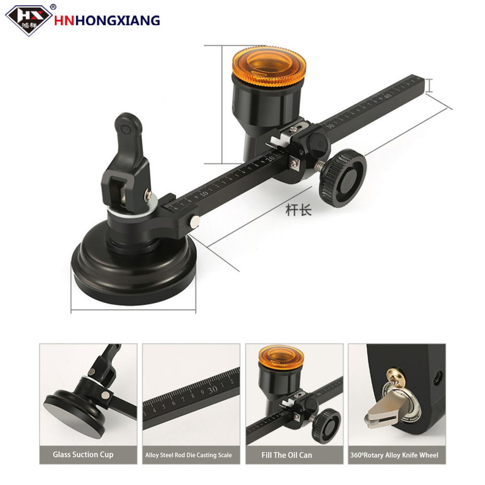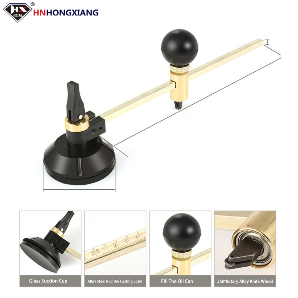 Professional Glass Cutter Round Cutting Tool With Round Handle and Suction Cup Adjustment Compass Type Glass Circular Cutter