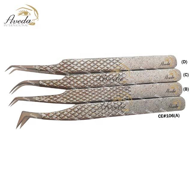 Professional Glitter Eyelash Tweezers Stainless Steel Straight Pointed Volume Pink Color Eyelash Extension Tweezers