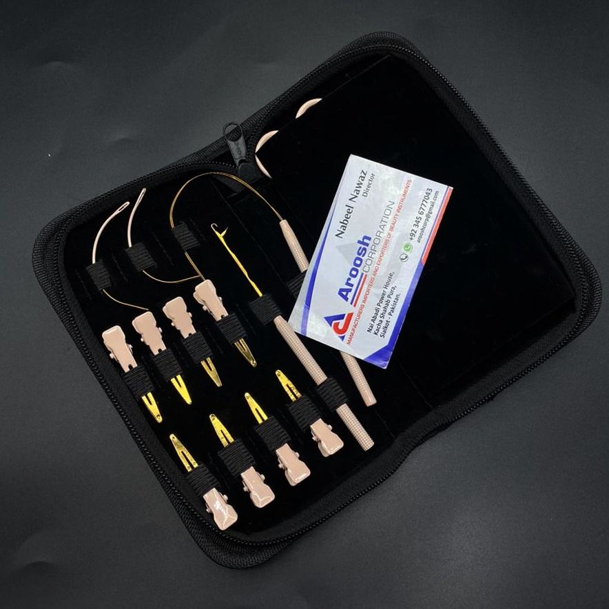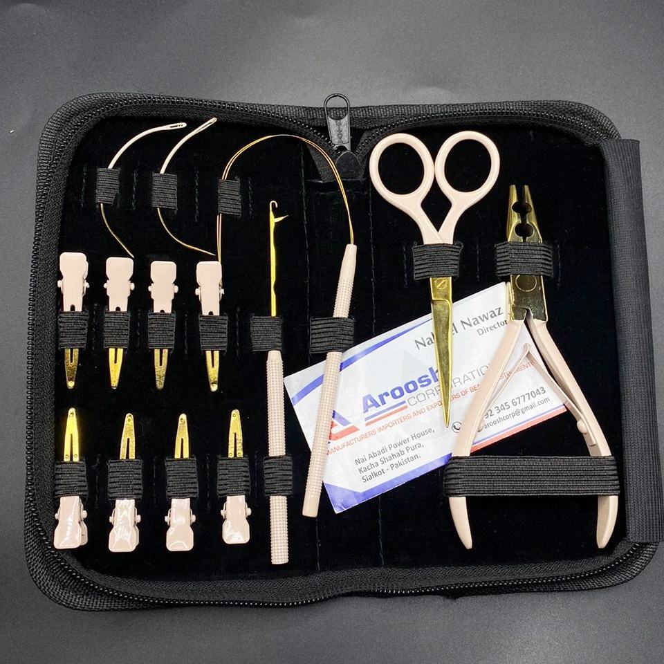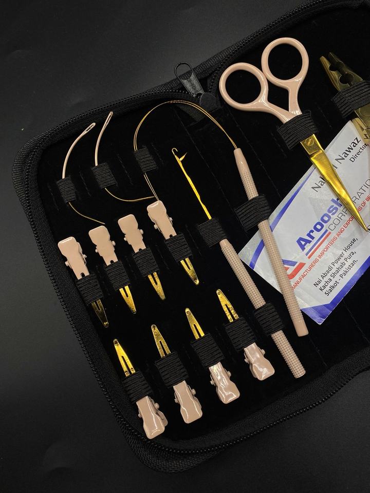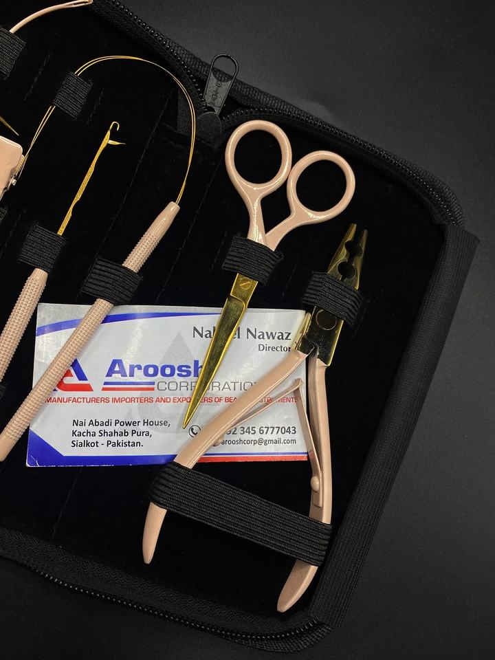 Professional Gold & Peach Hair Extensions Tools Kit Includes Loop Parting and Two-Hole Pliers for Remy Machine Double Weft Hair