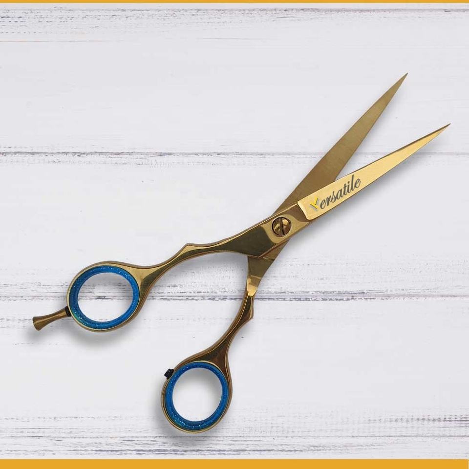 Ciseaux de coiffure de coiffeur professionnels enduits d'or et de plasma avec logo personnalisé Ciseaux de beauté avec marque privée
