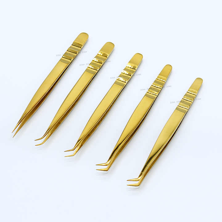 Professional Gold Plated Precision Lash Tweezers Set Eyelash Extensions Design to Reduce Finger Fatigue