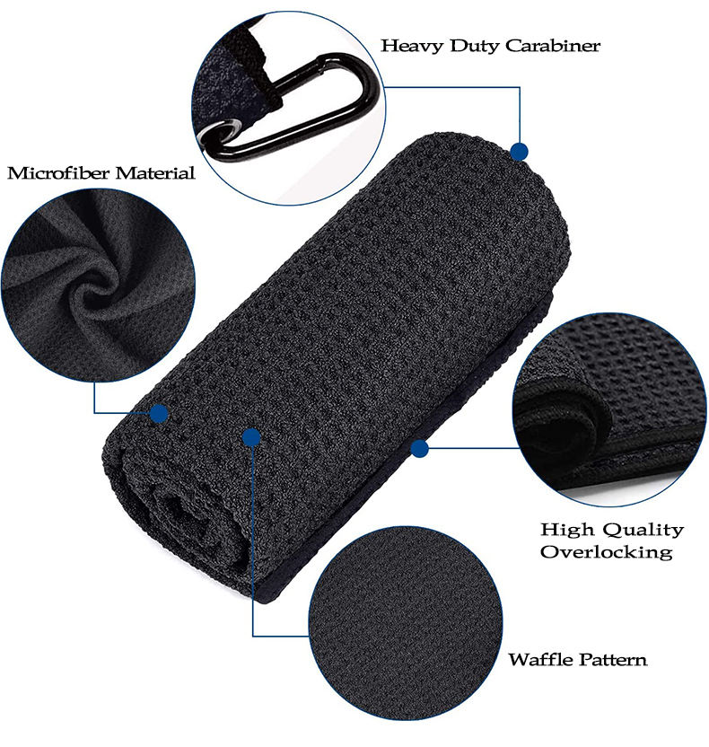 Serviette de golf professionnelle en microfibre avec logo personnalisé et fermeture auto-agrippante pour hommes, cadeaux de golf, serviette de golf en microfibre