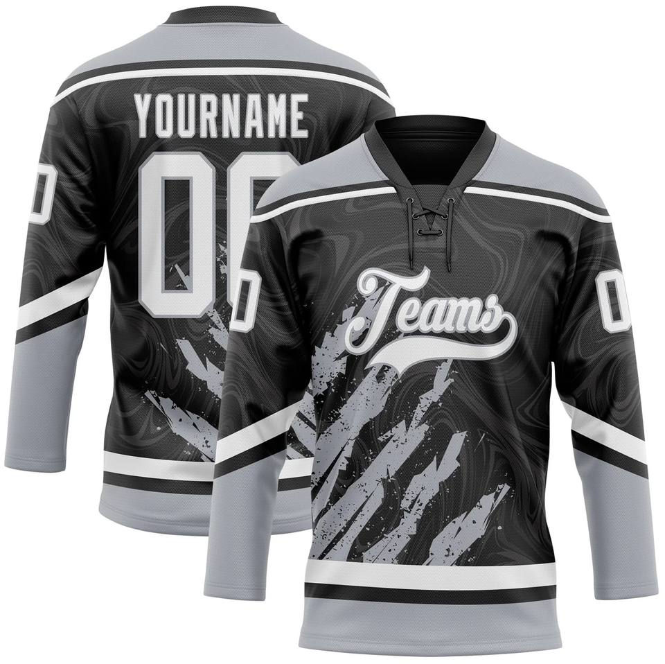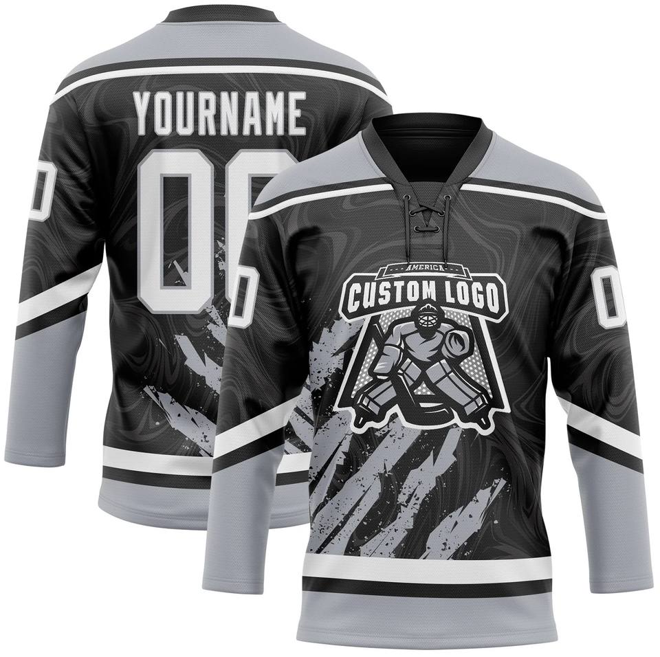 Maillot de hockey sur glace professionnel en polyester 100 % avec col en dentelle, antibactérien, séchage rapide, personnalisable avec noms d'équipe/joueurs