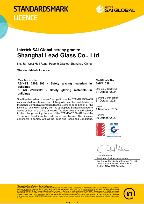 Certificate:AS/NZS2208, EN12150&12600, SGCC,IGCC,CE,3C