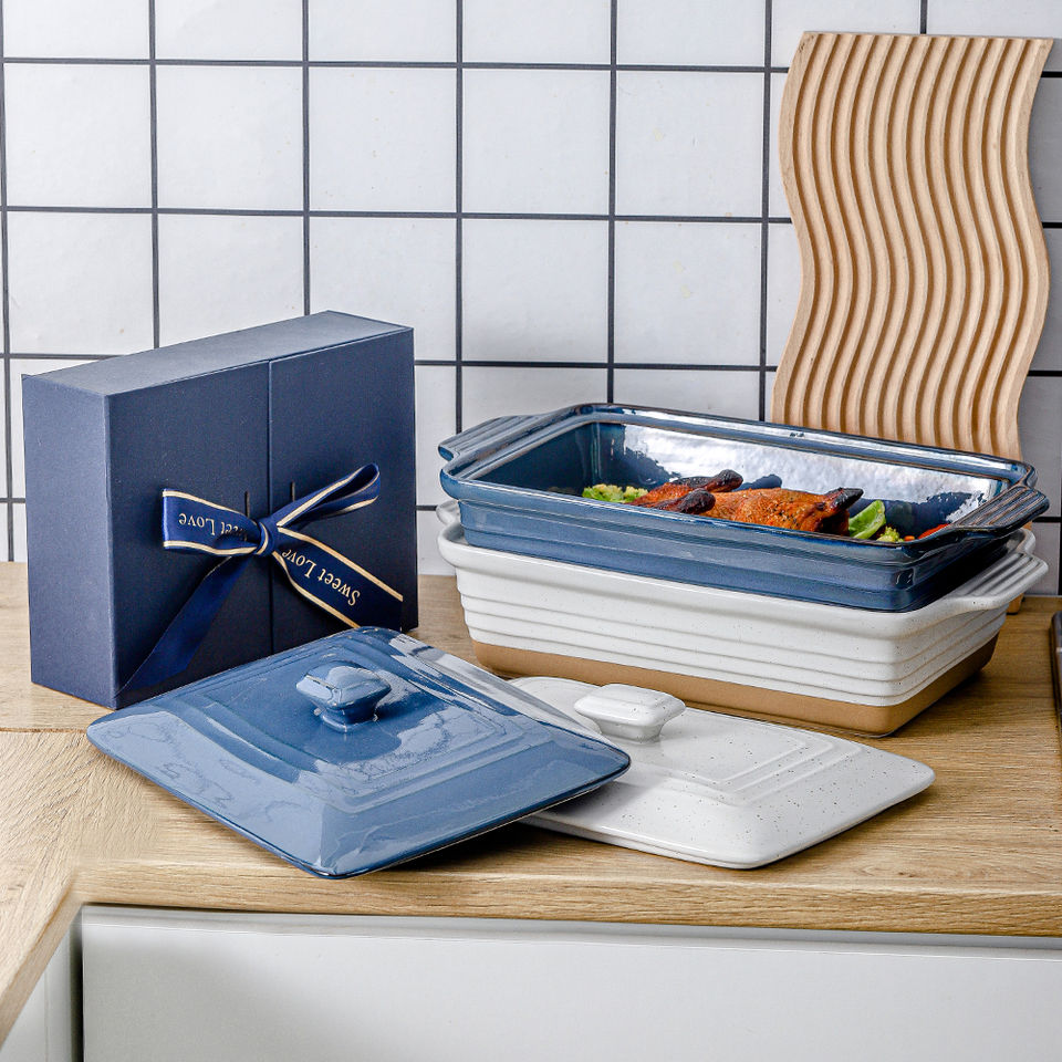 Plat à four rectangulaire extra large en verre/céramique de qualité professionnelle, résistant au four et au lave-vaisselle, empilable