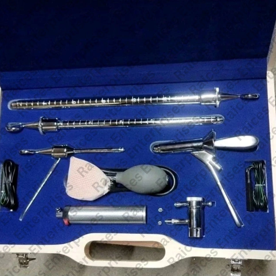 Ensemble de sigmoïdoscope rigide de haute qualité de qualité professionnelle obturateur de support de lumière électrique Source d'alimentation manuelle mallette de rangement en bois