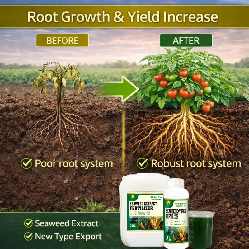 Engrais liquide professionnel à base d'extrait d'algues marines : Réduit le choc de transplantation et accélère l'enracinement pour les pépinières