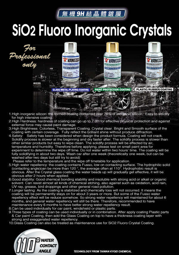 Product Name:SiO2 Fluoro Inorganic Crystals Coating For Plastic Parts & Rubber