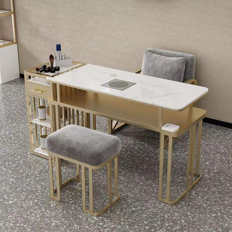 Ensemble de table et de chaise de manucure grise professionnelle un ensemble complet de meubles de salon avec aspirateur à port USB de stockage