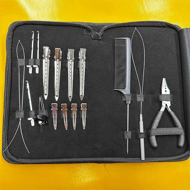 Kit professionnel d'extensions capillaires avec étui en cuir, ensemble complet pour l'application et le retrait, outils de coiffure pour salon, kit de coiffure pour femmes