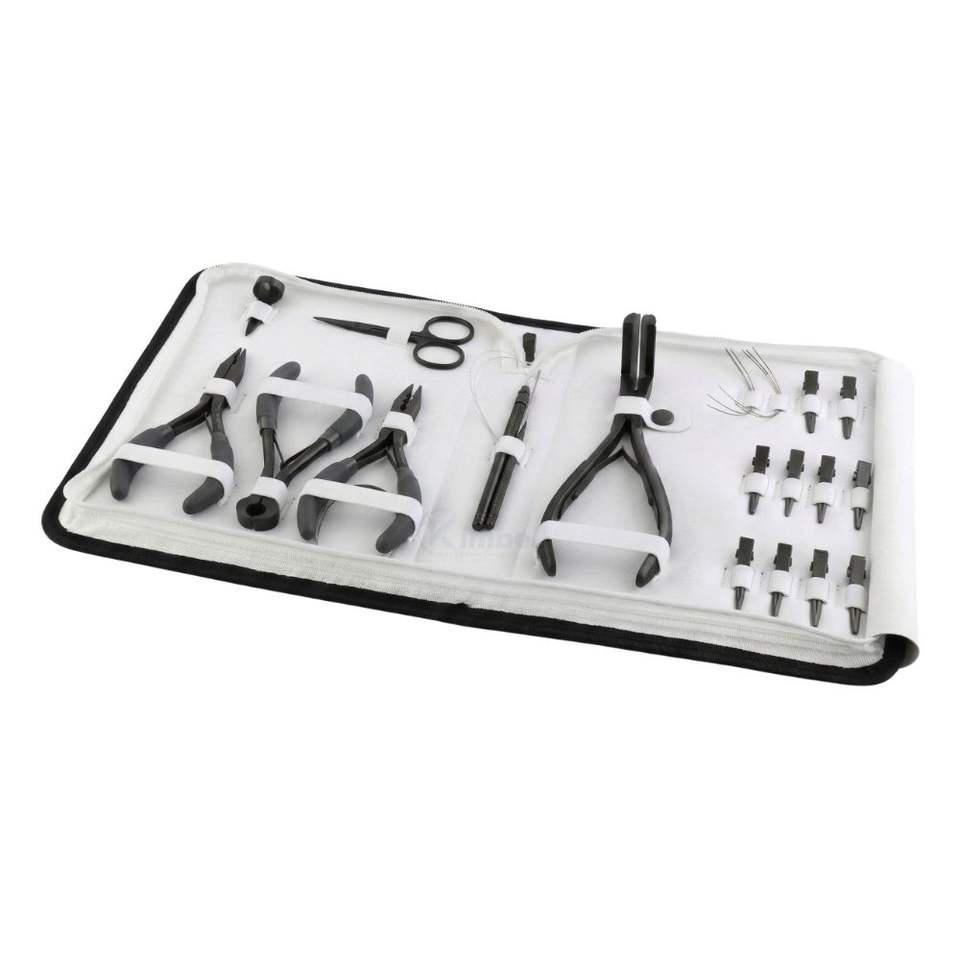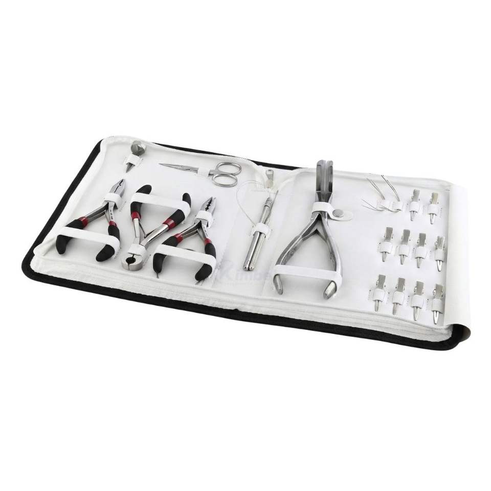 Le kit comprend:Pinces, ciseaux, aiguille à tirer, enfile-boucle, clips