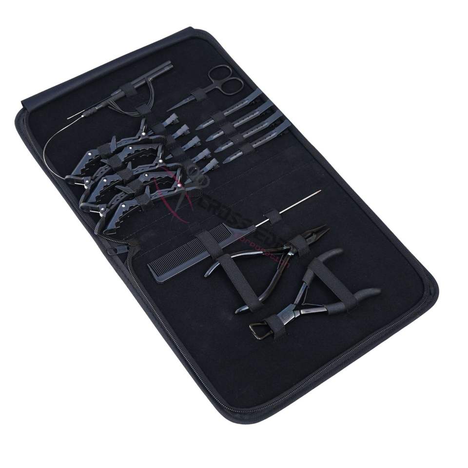 Kit d'installation d'extensions capillaires : outils, crochets et boucles de traction