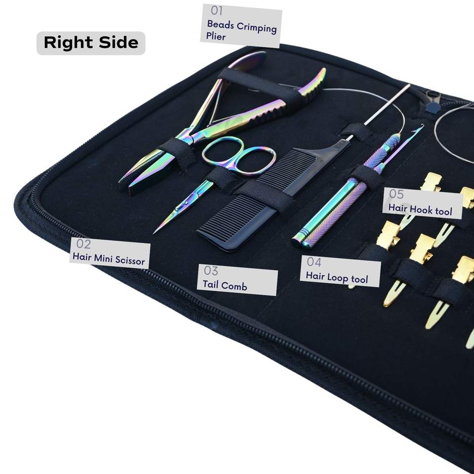 Mots-clés:Kit d'outils pour extensions capillaires avec pince à sertir pour micro-billes