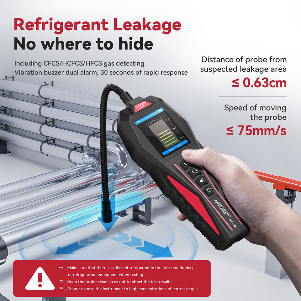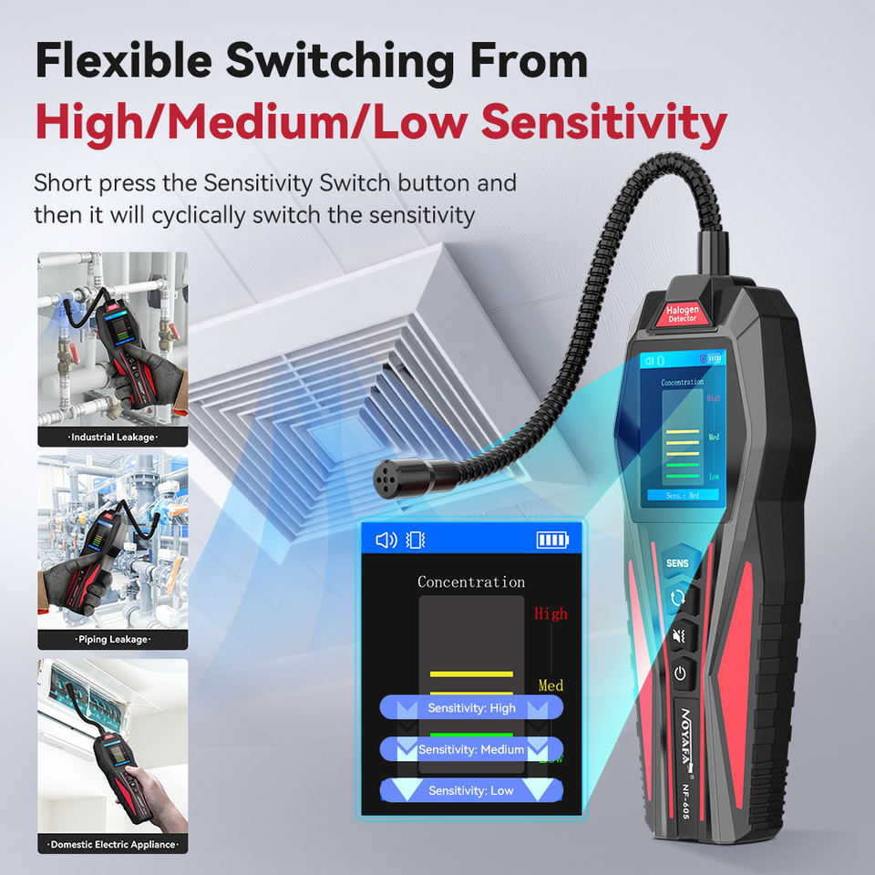 Détecteur de fuite de gaz halogène professionnel NF-605 haute sensibilité pour les fuites de réfrigérants (CFC, HCFC, HFC) avec 3 niveaux de réglage