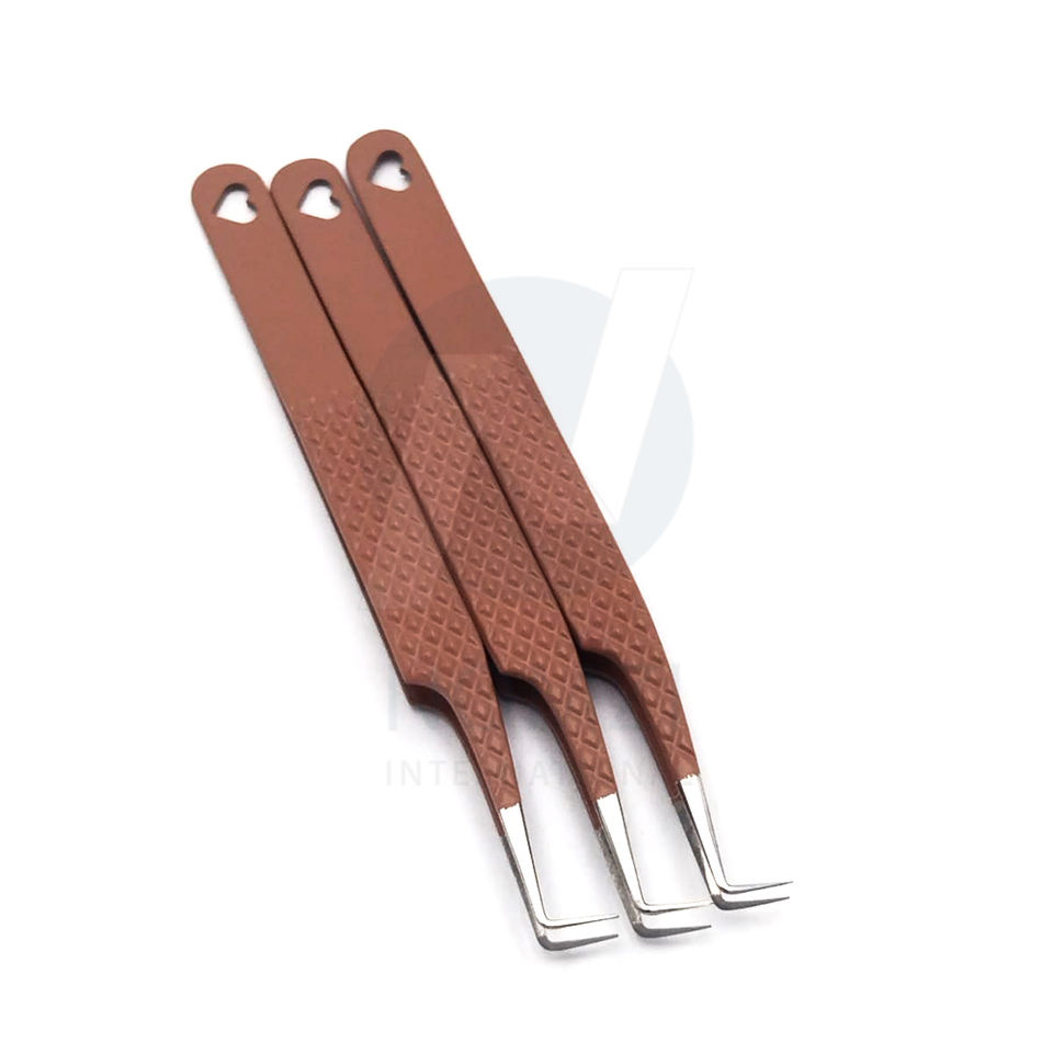 Pince à épiler professionnelle pour extensions de cils, marron, antidérapante, prise parfaite, pointe lisse, en acier inoxydable, antimagnétique