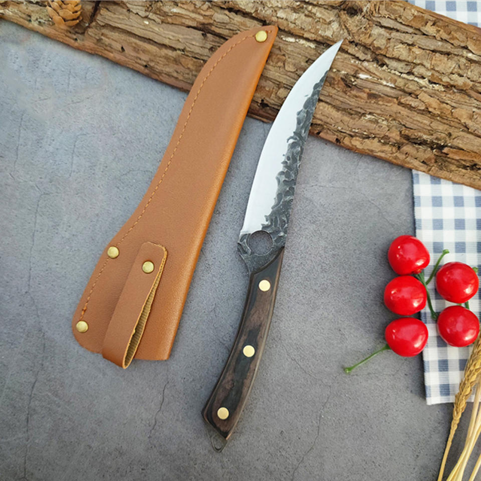 Xyj couteaux à os professionnels forgés 6 pouces, couteau à désosser de chef de boucher avec étui en cuir