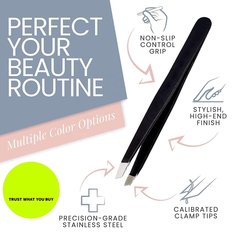 Pince à épiler professionnelle à pointe carrée faite à la main conception inclinée épilateur facial à sourcils en acier inoxydable sans lacunes ni taches