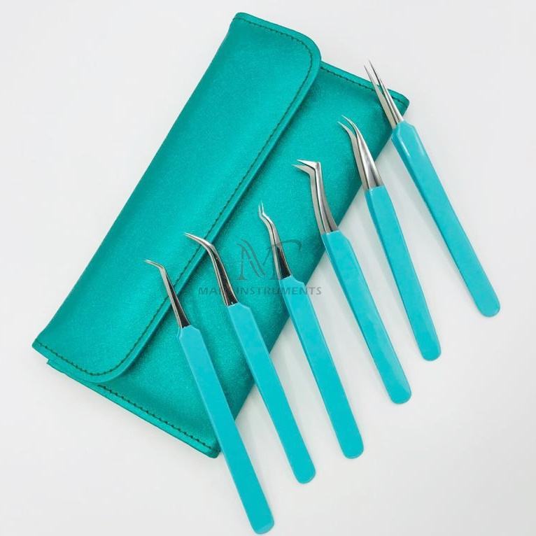 Pince à épiler professionnelle d'extension de cils en acier inoxydable faite à la main Type de pointe pointue enduite de couleur pour la durabilité